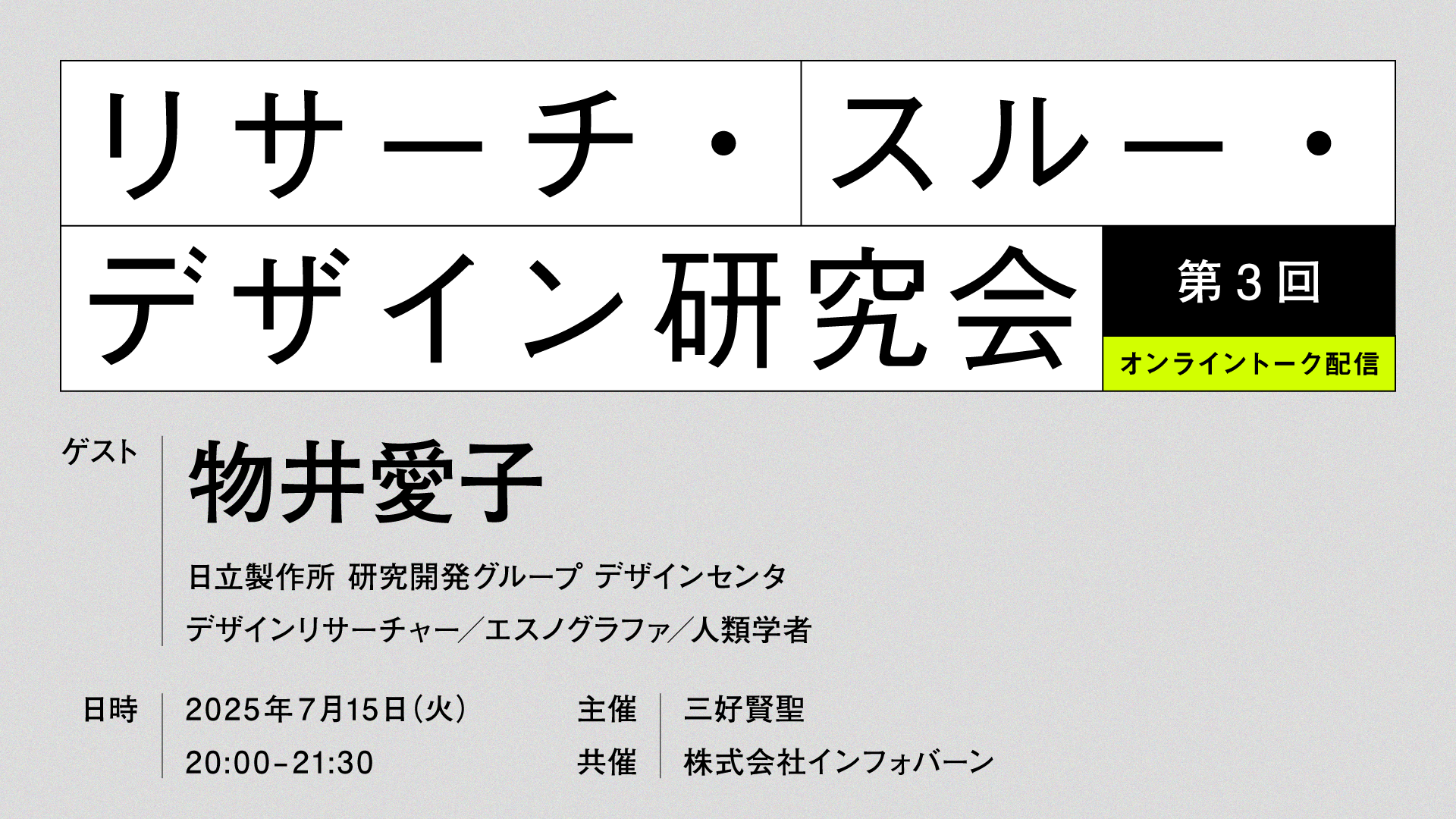 2025年7月15日に行われた第三回目では、エスノグラファ/人類学者の物井愛子さんをゲストとしてお招きし、未来洞察を用いた研究活動や実践事例についてお話しいただきました。