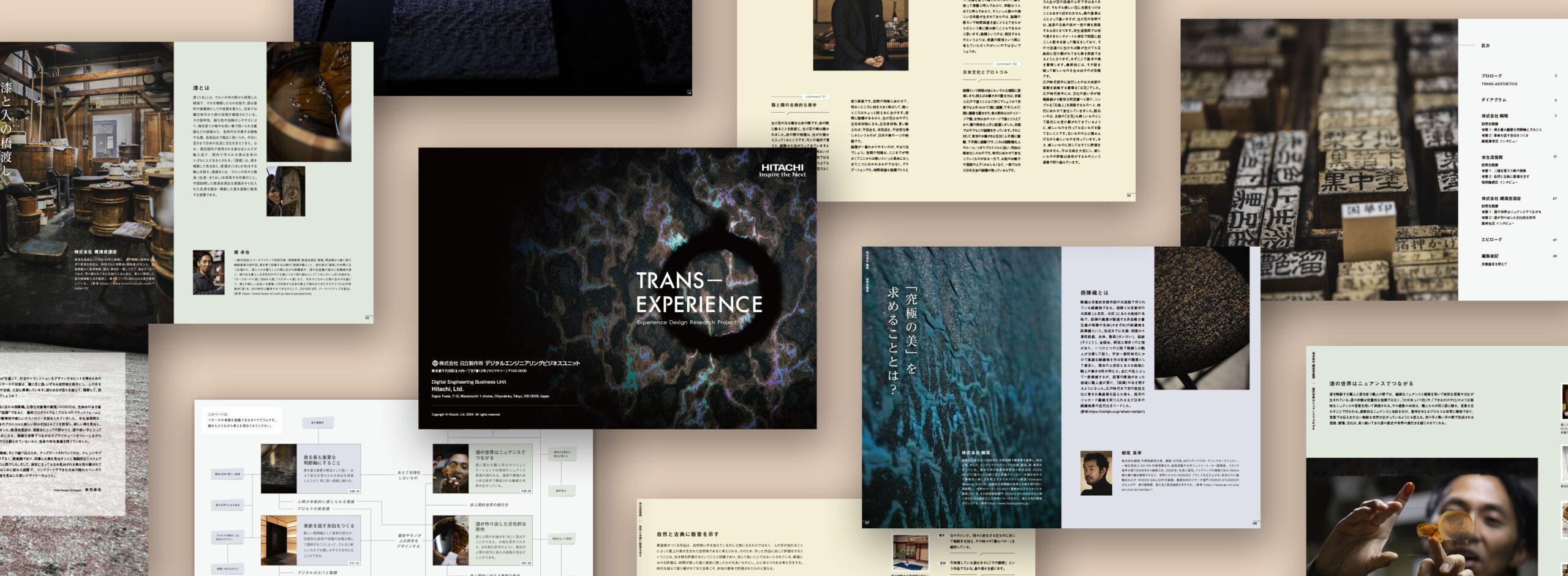 「伝統文化×現代の感性」から革新のきざしを捉える。エクスペリエンスデザインリサーチとリファレンスブック・プロトタイプの制作支援 日立製作所DesignStudioは、エクスペリエンスデザインの深化と知見の共有を目的に、「伝統文化における革新の本質」を探求するリサーチを実施しました。 インフォバーンは、このリサーチの設計からご支援し、リサーチの過程と発見したエッセンスを「エクスペリエンスデザインのためのリファレンスブック」として編集・制作しました。 詳細はこちら CLIENT 日立製作所DesignStudio YEAR 2024年1月〜2025年3月